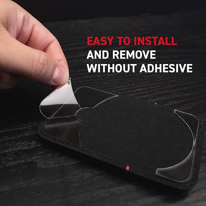 NANO-SUCTION ADHESIVE: Millions of nano-sized suction cups create vacuum effect to attach wallet to any Android or iPhone