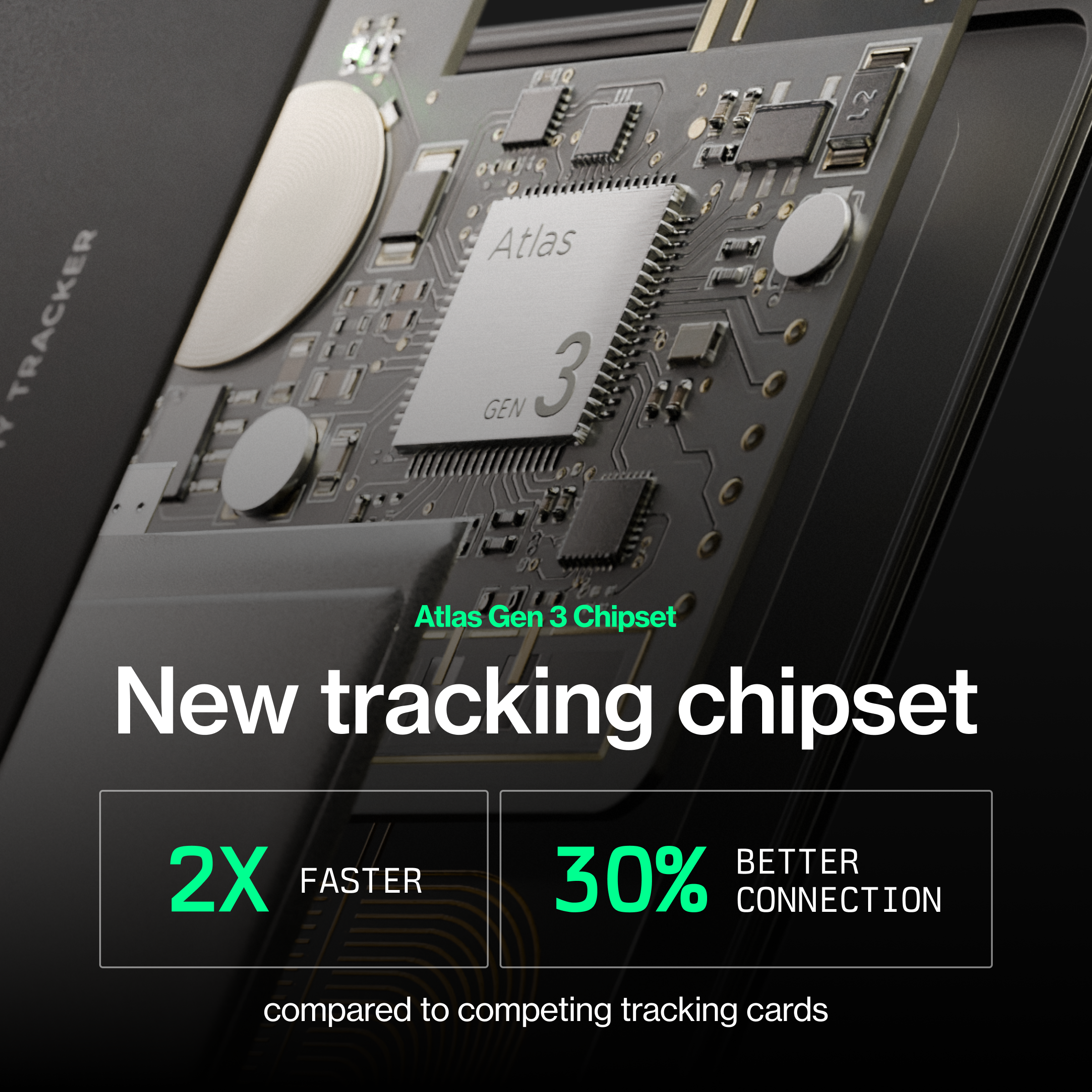 Atlas Gen 3 Chipset: This advanced processing architecture computes 2x faster than previous generations and connects 30% more reliably than standard trackers to ensure your location data is instant and accurate.